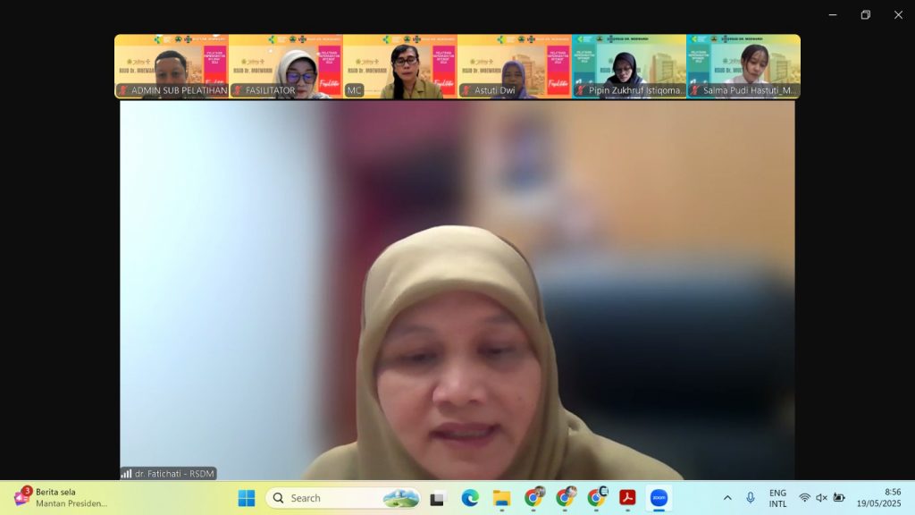 Wakil Direktur SDM & Pendidikan RSUD Dr. Moewardi, Dr. dr. Fatichati Budiningsih, Sp.PD(K)., membuka kegiatan tersebut secara daring melalui Zoom Meeting, Senin (19/05/2025).